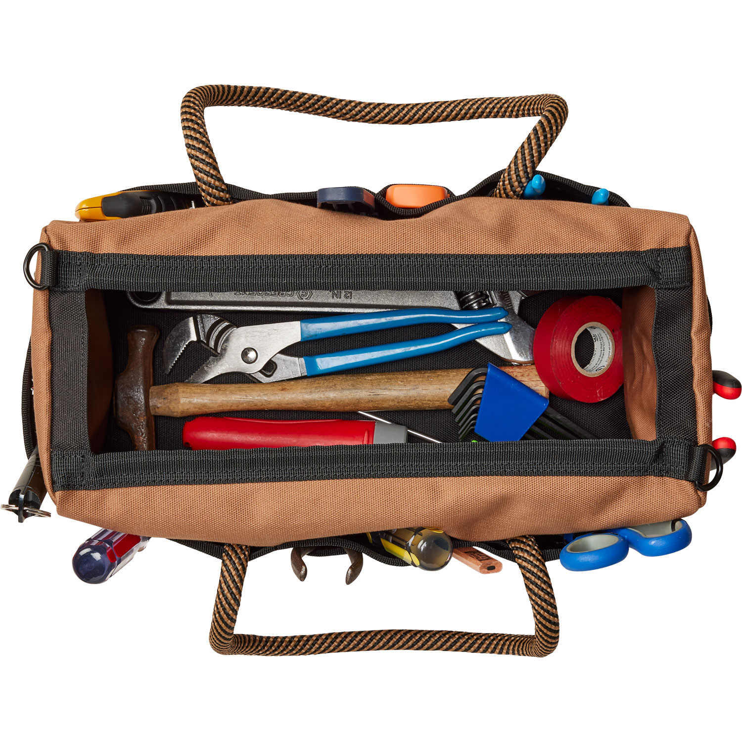 - Wide-open center compartment is handy for holding a drill, drop cord, other larger tools