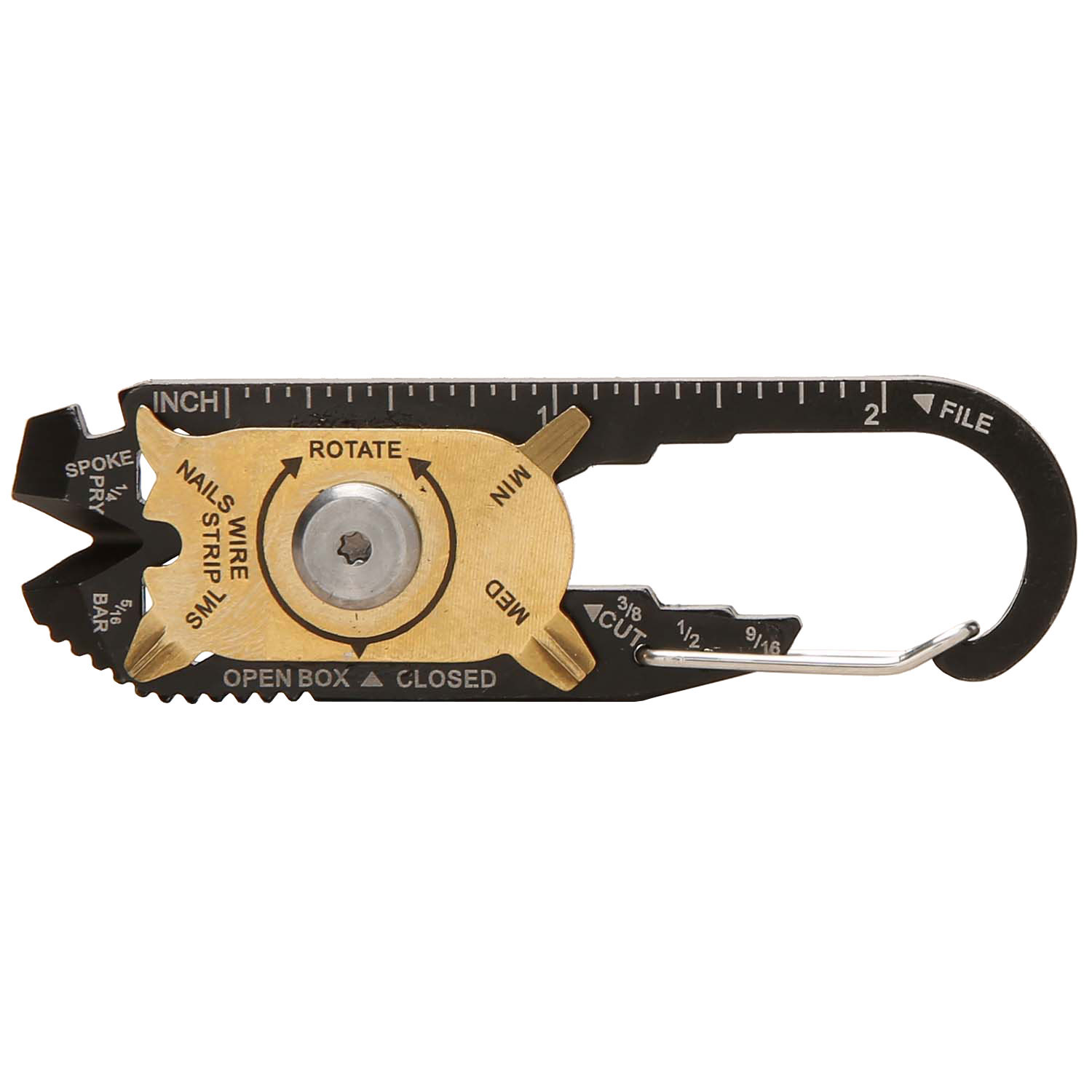 - Includes bottle opener, nail cleaner, several sizes of screwdrivers and spanner/wrenches, spoke wrench, cutting blade, wire stripper, ruler, box opener, pry bar and file
