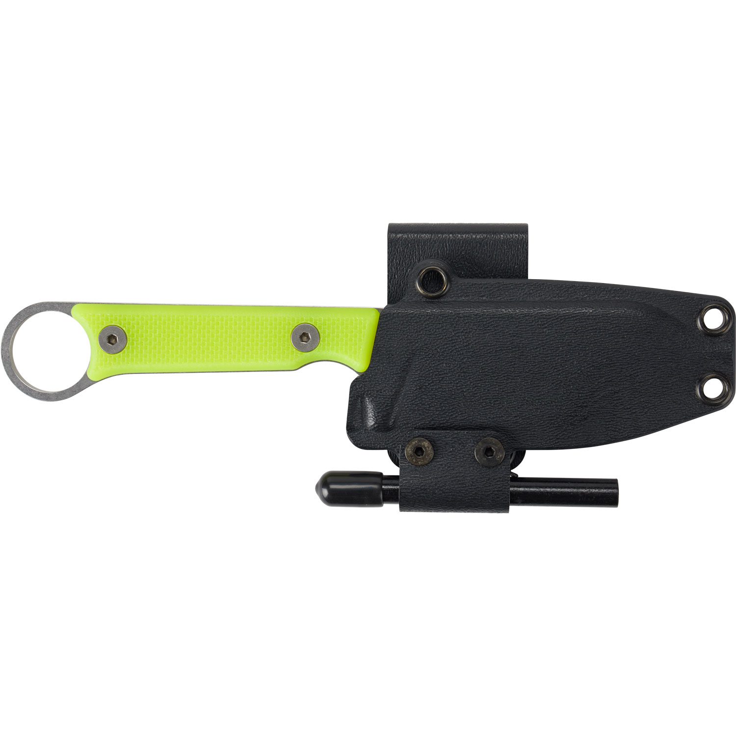 - Rugged Kydex rigid sheath with lashing grommets and pass-through belt clip for vertical, horizontal or angled carry