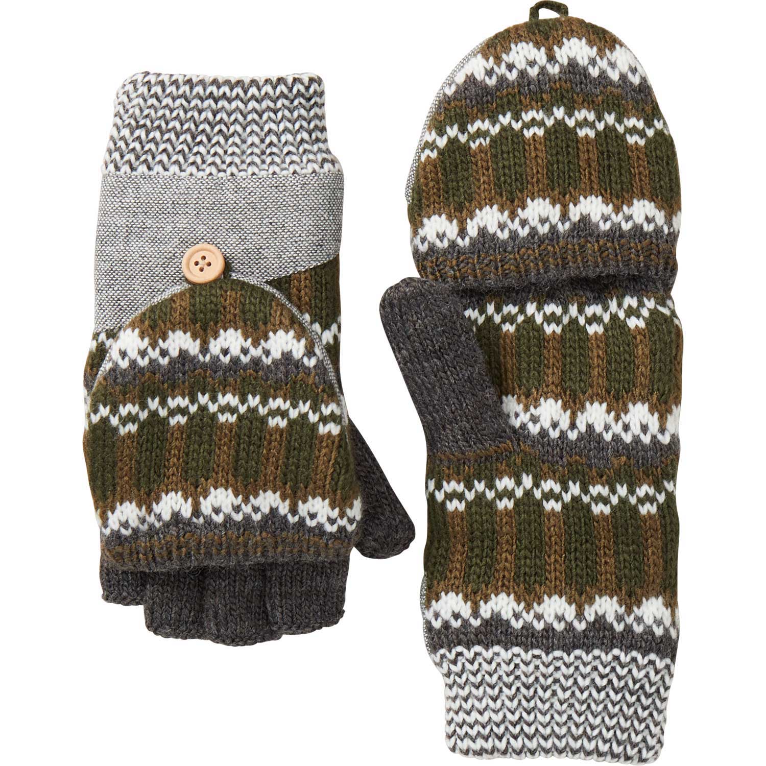 - Fair Isle knit convertible mittens with soft, warm sherpa fleece lining