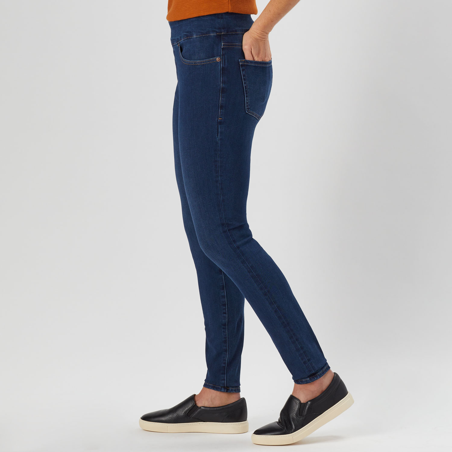 - High-rise waist, trim hip and thigh, very fitted to ankle