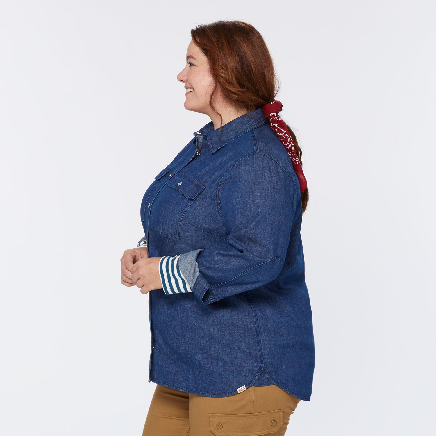 This Denim Shirt is made from soft, broken-in cotton that’s durable yet oh-so-comfy. Cut with feminine seaming and reinforced with triple stitching and elbow patches, it’s just as tough as it is fetching. And then of course we’ve gone and added all those Duluth-y details you’ve come to expect – like Reach Gussets® for unfettered freedom of movement, triple-needle stitching and a built-in Shirttail Shammy® to shine screens and specs. Layer it over a tank, under your favorite sweater or by its lonesome. This Denim Shirt’s right at home whether you’re pulling barn duty or tearin’ it up at the local watering hole.