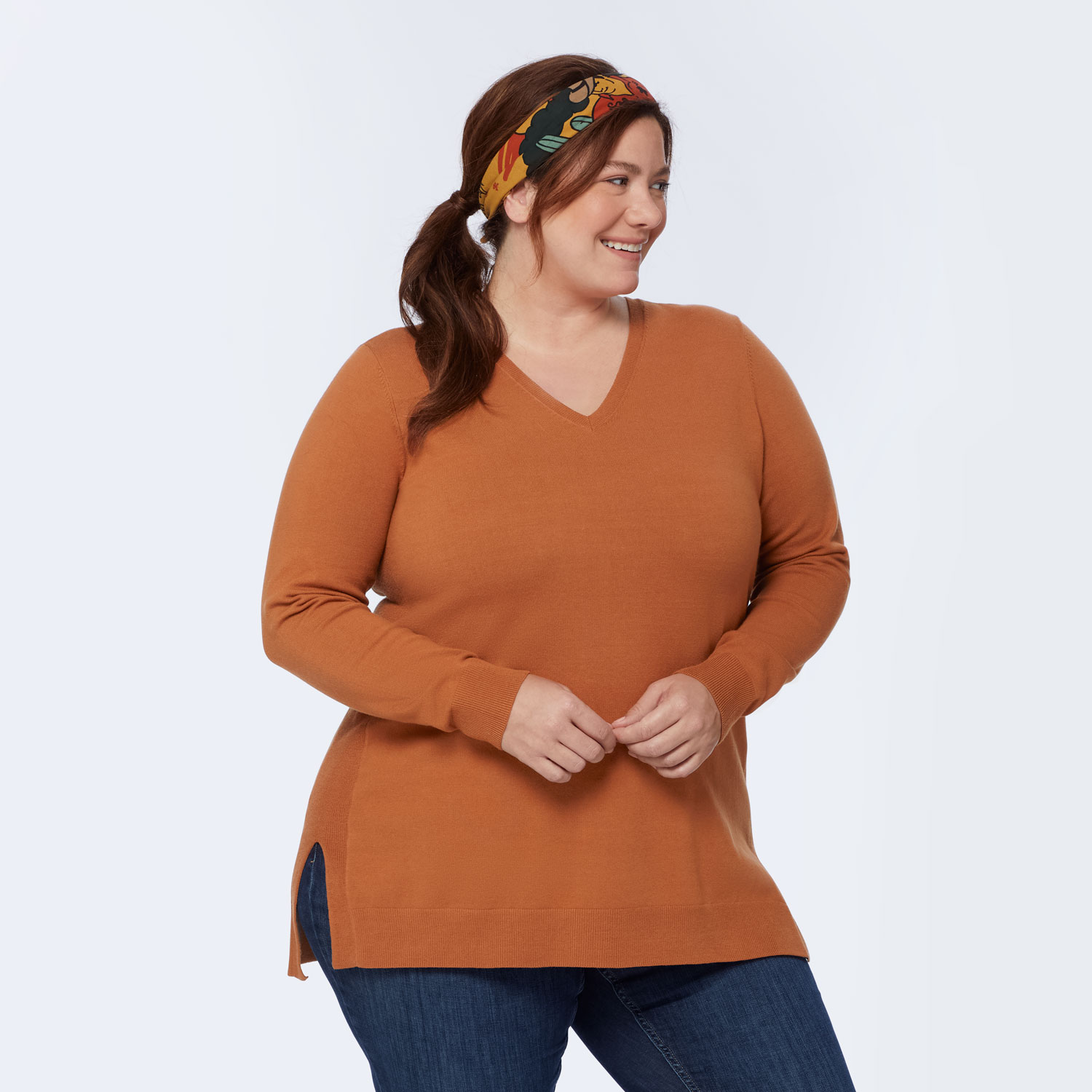 - Women's Plus Shiftless V-Neck Tunic Sweater