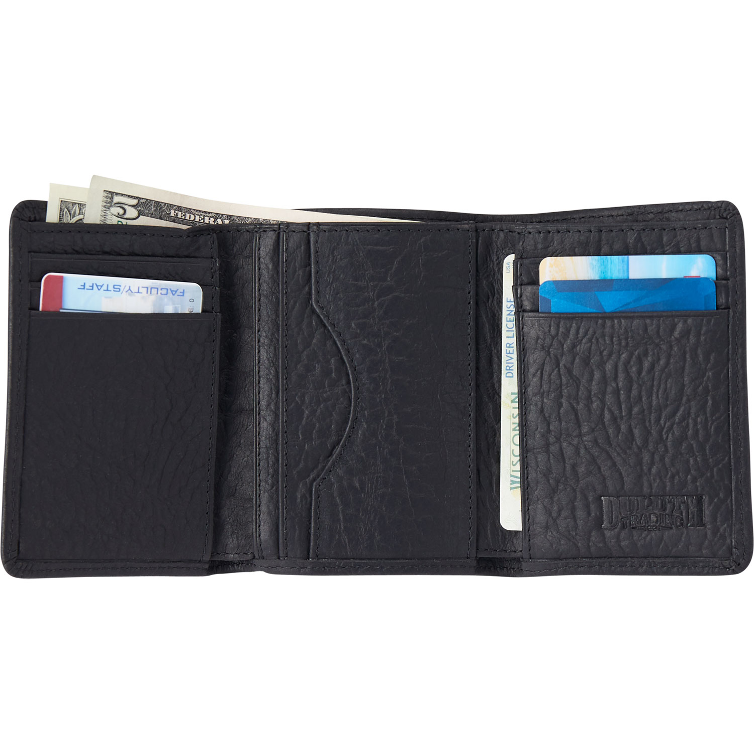 - Unique pebbled texture of authentic bison leather makes this wallet a real conversation starter