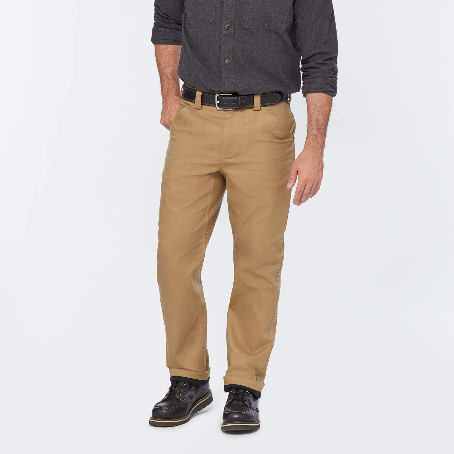 No matter the work or weather, you’re the first to punch in, the last to clock out and in between work circles around the crew. For you, we’ve built DuluthFlex® Fire Hose® HD Lined Pants. They’re constructed of a high-tech wonder fabric that withstands abrasion 4x better than your tried-and-true cotton canvas work pants. Even better, it has more than double the tensile strength and rip resistance of highly durable original DuluthFlex Fire Hose fabric. Yet for all its ruggedness, DuluthFlex Fire Hose HD is remarkably wearable thanks to its 10-oz. weight and built-in stretch. To fend off cold, we’ve built in a soft grid fleece lining that holds in heat without adding bulk. A moisture-shedding DWR fabric finish lets mist roll right off. Articulated knees and a roomier Crouch Gusset® add comfort in places where other pants pinch. Last, but far from least, they’re triple-stiched and outfitted with 9 practical pockets. DuluthFlex Fire Hose HD – our toughest work pants for the trades’ toughest men.